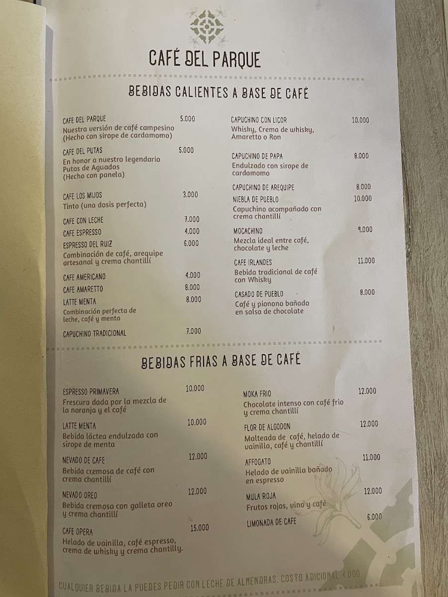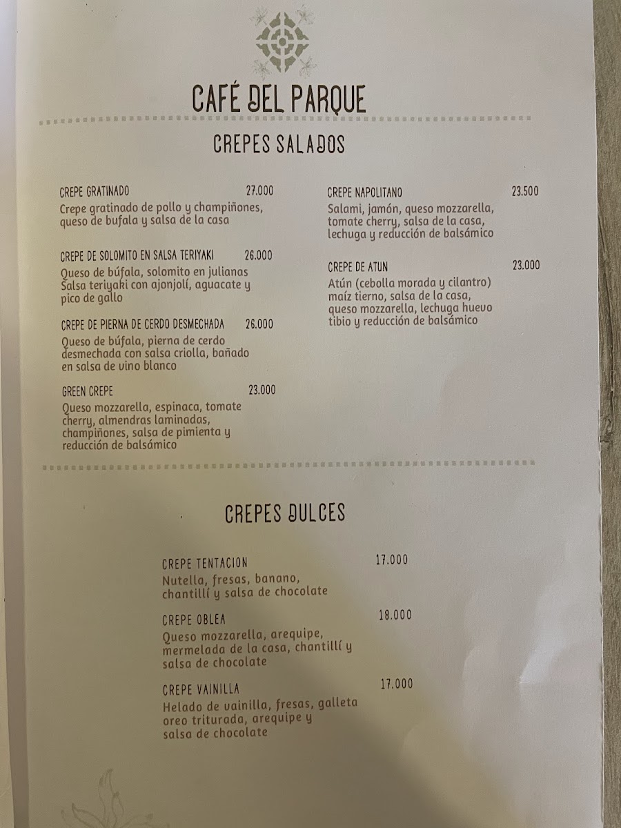 In conclusion, Café Del Parque presents a thoughtfully curated menu that blends comforting sweetness with a clear sense of local identity, leaving a memorable impression on diners. The Crêpe Met Ijs stands out as a delightful indulgence, pairing delicate textures with a refreshing touch that feels both satisfying and refined, while the Piononos Con Café de Origen perfectly capture the essence of the region, combining rich flavors with the unmistakable character of locally sourced coffee. Together, these dishes reflect a balance between creativity and tradition, showcasing the café’s ability to elevate simple ingredients into something special. Overall, the menu feels cohesive and inviting, offering guests a flavorful experience that lingers pleasantly beyond the last bite.